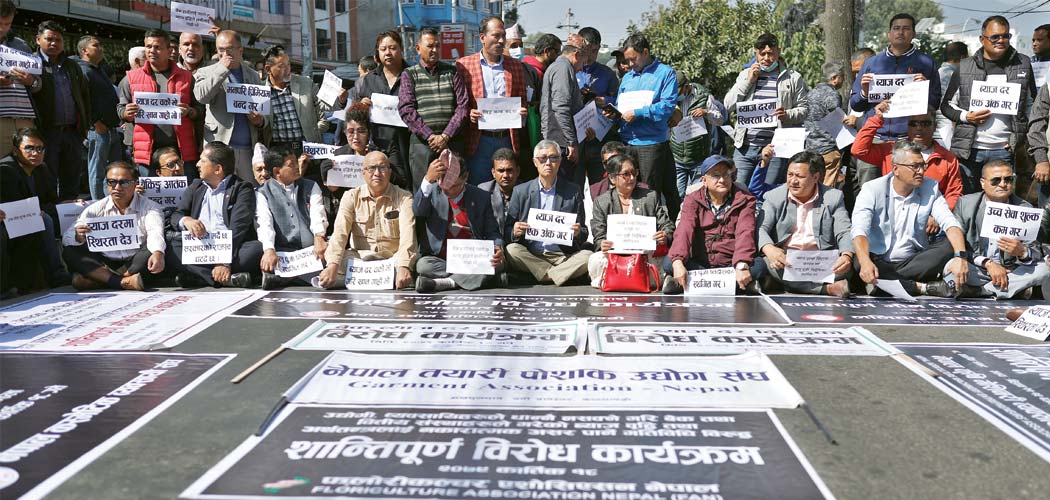 काठमाडौँ, कात्तिक १९ः चर्को ब्याजदरका कारण उद्योग, व्यवसाय सञ्चालनमै समस्या आएको भन्दै उद्योगी, व्यवसायी शुक्रबार सडकमा उत्रिएका छन्। नेपाल उद्योग वाणिज्य महासङ्घका पदाधिकारीसहित निजी क्षेत्रका विभिन्न क्षेत्रगत र जिल्लागत सङ्घसङ्गठनले...
