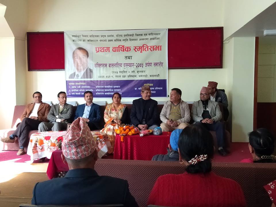 -रुद्रदेव पाण्डे काठमाडौँ, मङ्सिर ७ : डा. कविताराम वाङ्मय प्रतिष्ठानले बालप्रतिभा पुरस्कार र बालसाहित्यकार पुरस्कार प्रदान गरेको छ । राजधानीमा एक कार्यक्रम गरी बाल गायक अशोक दर्जीलाई बालप्रतिभा र एन्जेलिना न्यौपानेलाई बालसाहित्यकार पुरस्कार...