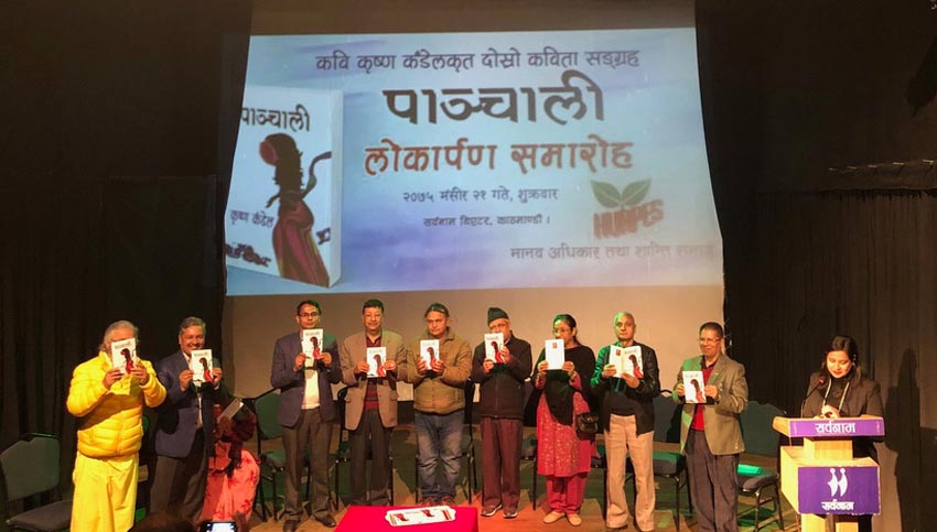 काठमाडौं, मंसिर २२ : मानव अधिकारकर्मी एवं कवि कृष्ण कँडेलद्वारा लिखित ‘पाञ्चाली’ कविता सङ्ग्रह सार्वजनिक गरिएको छ । मानवअधिकार तथा शान्ति समाजले शुक्रबार आयोजना गरेको कार्यक्रममा वरिष्ठ नाटककार अशेष मल्ल,...