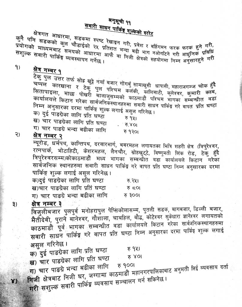 तोकियो काठमाडौं महानगरभित्र पार्किङ शुल्क, अनुमति लिएर पार्किङ व्यवसाय चलाउन सकिने
